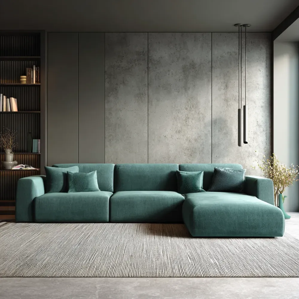 Canapé d'angle tissu 290x160x80 cm – Vert – Design moderne